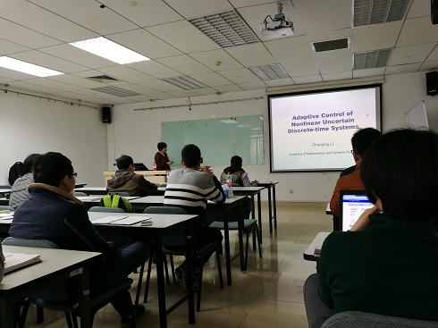 2016年11月22日下午两点三十分,第十三届北航研究生学术论坛自动化学院分论坛第二十一次专家报告会在新主楼A1028举行,本次由自动化学院的王磊老师邀请到了中国科学院数学与系统科学研究院的李婵颖副研究员进行关于离散时间非线性不确定系统的自适应控制的报告。