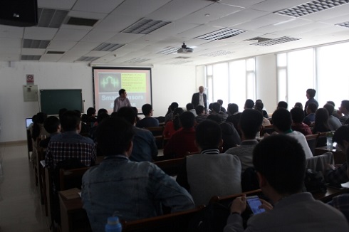 2016年4月13日下午14:30,第十三届北航研究生学术论坛自动化学院第二场专家报告会在新主楼E706举行,本次专家报告会有幸邀请到了加拿大皇家科学院院士Jamal Deen教授为我们做了题为Smart Sensors, Smart Homes and Smart Cities的报告。自动化学院焦宗夏教授、张霖教授等多位教授及部分研究生、博士生以及国外留学生参加了本次报告会。