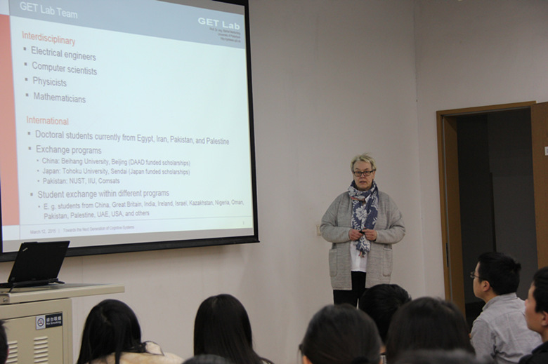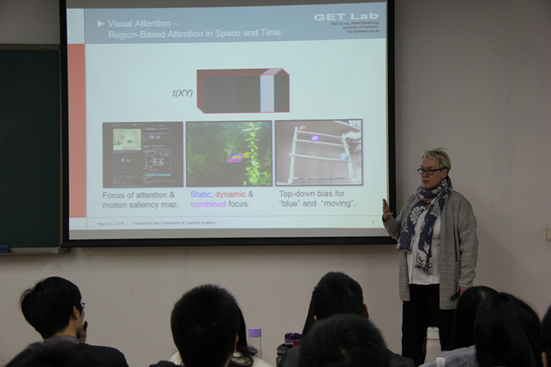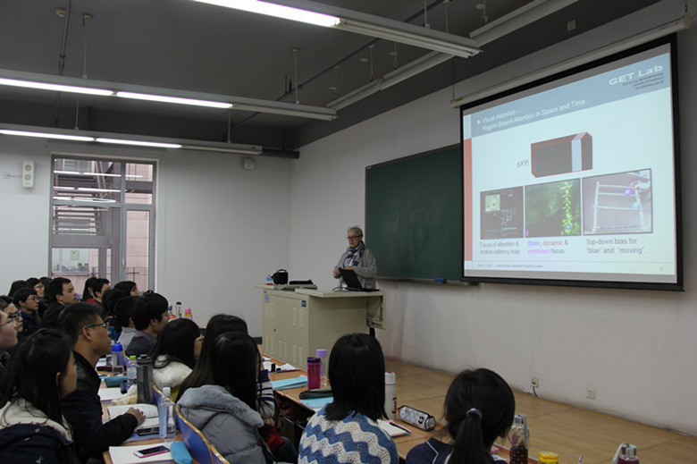 2015年3月12日,德国帕德博恩Mertsching教授在新主楼D218教室为我校师生作了题为 “Towards the next generation of cognitive system”的学术报告。本次报告会由自动化学院王秋生副教授主持,吸引了来自全校不同专业的50多名师生参加。Mertsching教授对其在计算机视觉和机器人控制领域所做的工作做了系统性的介绍。报告结束后,参加此次活动的师生们就感兴趣的前沿问题与Mertsching教授进行了互动与交流,现场学术氛围热烈。